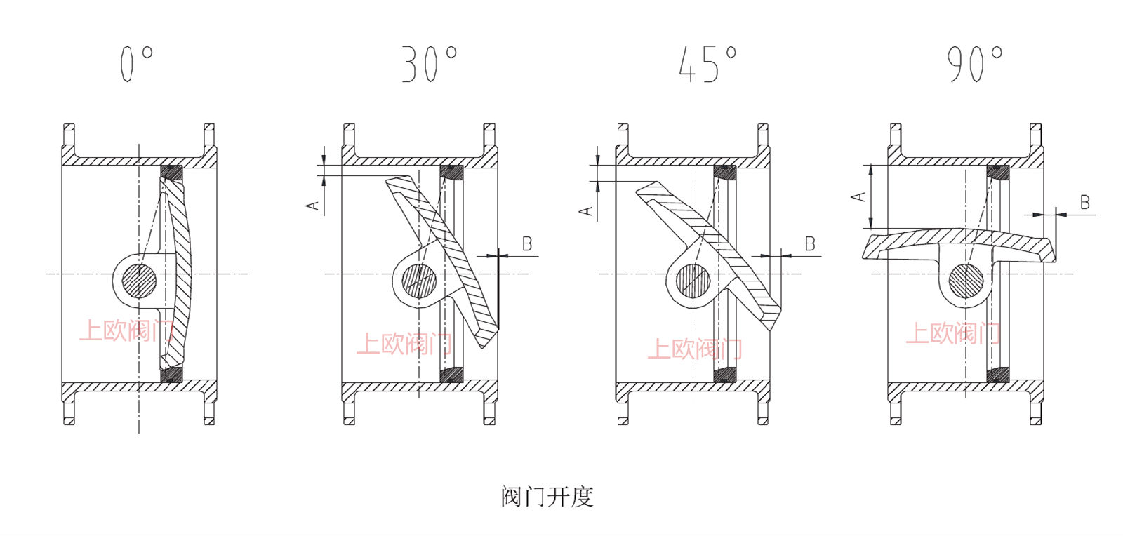 因?yàn)檗D(zhuǎn)動(dòng)中心偏離閥芯幾何中心,就有閥芯打開時(shí)閥芯實(shí)體不斷向后退、向內(nèi)縮、閥芯關(guān)閉時(shí)閥芯實(shí)體不斷向前進(jìn)、向外脹的實(shí)際效果,其功能相當(dāng)于半球閥、閘閥、截止閥、蝶閥的綜合。打開各不同角度變化圖: