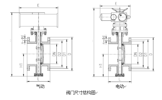 閥門的結(jié)構(gòu)圖與連接安裝尺寸表