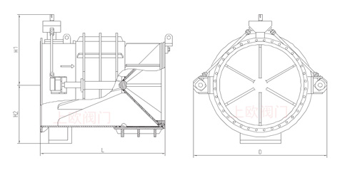 當(dāng)需要引導(dǎo)排放的水流時,可在固定于閥體前端的錐體上安裝充氣整流罩。整流罩可控制射流的散開不使水花落到閥門上,讓水流集中地泄到下游,并對水流還有部分消能作用。