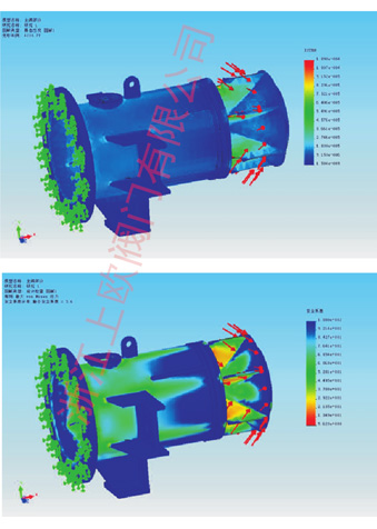 錐形放散閥通過改變調(diào)節(jié)套筒與錐體之間的過流面積,實現(xiàn)對流量的控制,使閥門在任意開度下自由排放均能將氣蝕和振動控制在最低狀態(tài)。錐體通過科學(xué)的流體設(shè)計,采用 COSMOSWorks結(jié)構(gòu)分析軟件確定閥門應(yīng)力分布,采用先進(jìn)的FLUENT流體專用分析軟件進(jìn)行測試,使過流面的變化與調(diào)節(jié)套筒的移動形成線性對應(yīng)關(guān)系,實現(xiàn)全行程的良好調(diào)節(jié)性能。錐體通過多塊流線形肋板固定于閥體上,使該閥與其它常規(guī)消能閥相比,顯著降低或消除閥門運行時的汽蝕與振動,并使閥門操作力矩達(dá)到最低。閥門關(guān)閉時,調(diào)節(jié)套筒與錐體前端的錐形閥座形成一個金屬對金屬和金屬對橡膠的軟硬雙重密封,保障閥門零泄漏。開閥時,排出的水流形成一個寬的錐角噴射到大氣中,并且被分解成細(xì)密的飛沫。如果噴射流形狀需要控制,在閥門出口端可添加一個充氣整流罩,不但允許空氣混合到水中防止管壁真空的產(chǎn)生,而且還能形成集中的水流形狀。
