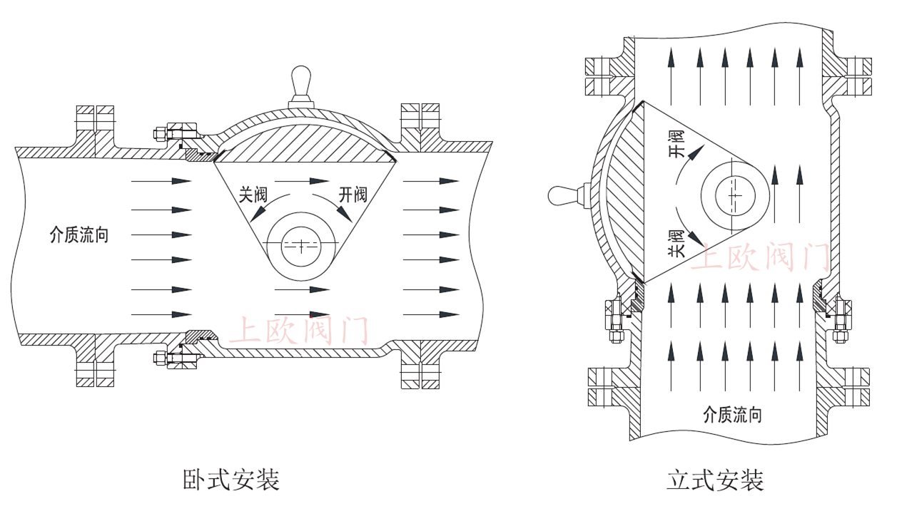 蝶式閥門(mén)擁有體積優(yōu)勢(shì),但由于其閥板畢竟處于流道中央,無(wú)法避免介質(zhì)對(duì)閥板、閥軸以及閥座密封面的沖刷和閥板對(duì)介質(zhì)流通產(chǎn)生的阻礙,容易產(chǎn)生渣質(zhì)的堆積與密封的實(shí)效,故不能較長(zhǎng)時(shí)間滿足工況要求。