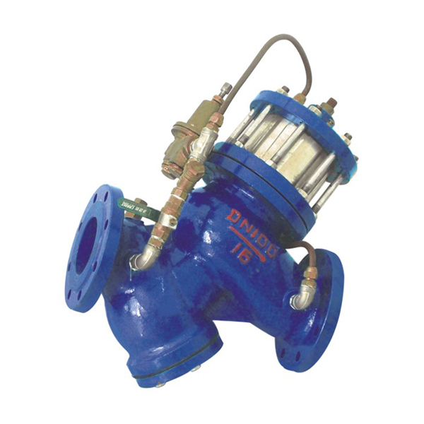 YQ98001過(guò)濾活塞式可調(diào)減壓閥一種利用介質(zhì)自身能量來(lái)調(diào)節(jié)與控制管路壓力的智能型閥門。當(dāng)閥門從進(jìn)口端給水時(shí),水流過(guò)針閥進(jìn)入主閥控制室,出口壓力通過(guò)導(dǎo)管作用到導(dǎo)閥上。當(dāng)出口壓力高于導(dǎo)閥彈簧設(shè)定值時(shí),導(dǎo)閥關(guān)閉?刂剖彝V古潘,此時(shí)主閥控制室內(nèi)壓力升高并關(guān)閉主閥,出口壓力不再升高。當(dāng)閥門出口壓力降到導(dǎo)閥彈簧設(shè)定壓力時(shí),導(dǎo)閥開啟,控制室向下游排水。由于導(dǎo)閥系統(tǒng)排水量大于針閥的 進(jìn)水量,主閥控制室壓力下降。進(jìn)口壓力使主閥開啟。在穩(wěn)定狀態(tài)下,控制室進(jìn)水、排水相同,主閥開度不變,出口壓力穩(wěn)定。出口壓力不因進(jìn)口壓力變化而改變, 亦不因主閥出口流量的變化而改變,安全可靠地將出口壓力維持在設(shè)定值上。該閥減壓精確,性能穩(wěn)定、安全可靠、安裝調(diào)節(jié)方便,使用壽命長(zhǎng)?捎糜谏罱o水、 消防系統(tǒng)及工業(yè)給水系統(tǒng)。