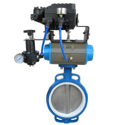 氣動(dòng)調(diào)節(jié)蝶閥采用電-氣閥門定位器,以電信信號(hào)和壓縮空氣為動(dòng)力,接受控制系統(tǒng)輸入4-20MA或1-5V電流信號(hào),由調(diào)節(jié)器將壓縮空氣轉(zhuǎn)?成氣源壓力輸入輸出,改變閥板的旋轉(zhuǎn)角度(0-90度任意角),具有較好的調(diào)節(jié)控制流量參數(shù)。